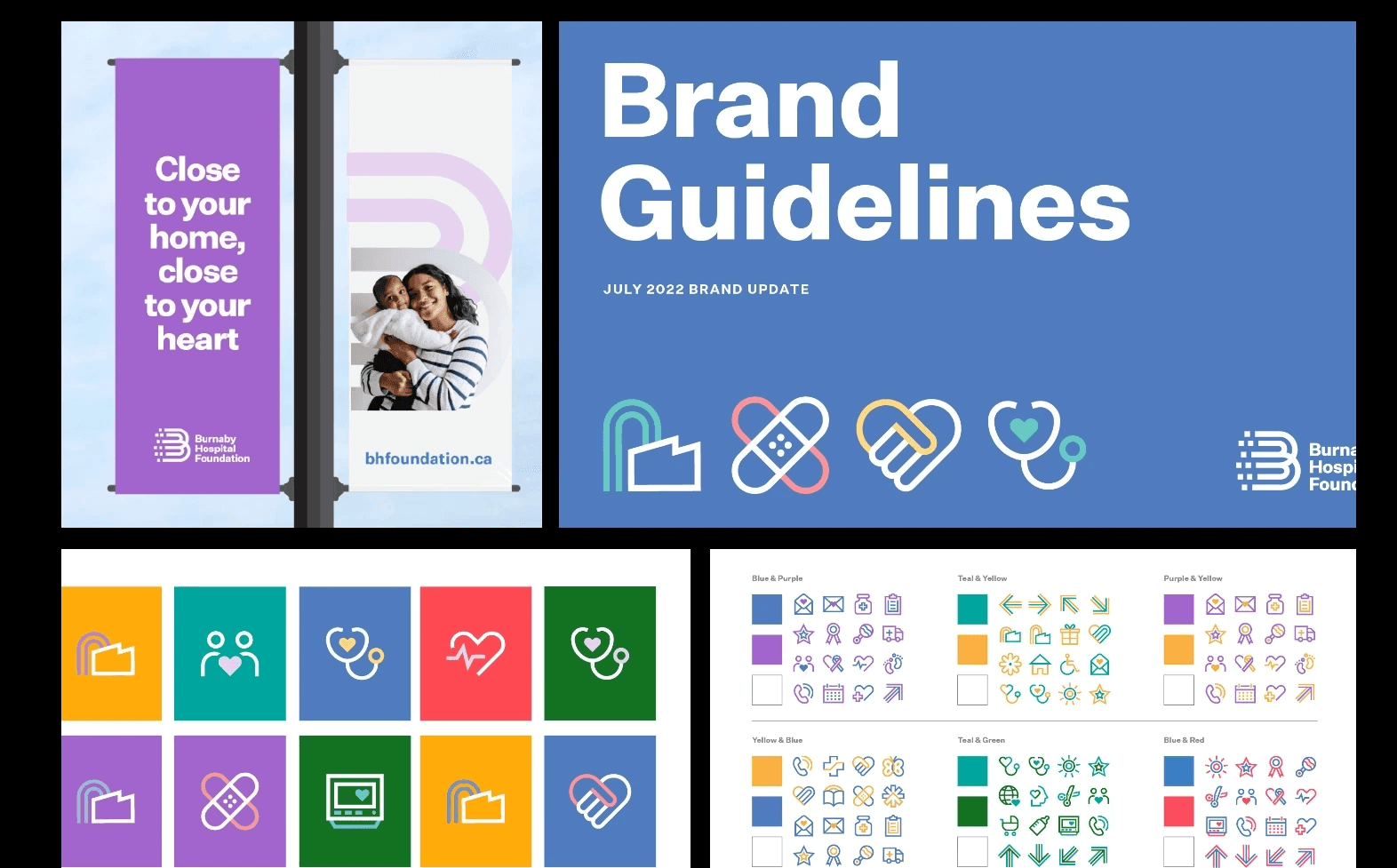 Two years after a logo rebrand by another agency, Burnaby Hospital Foundation still lacked the tools to bring its identity to life — just as it was entering the most ambitious hospital rebuild in its history. We built out the missing pieces: an uplifting icon system, a vibrant color palette, and playful numbers and illustrations that reflect the generosity and spirit of its community. The result is a dynamic brand toolkit that turns a static logo into a living identity, ready to carry BHF’s story across every touchpoint as it builds the future of healthcare in Burnaby.