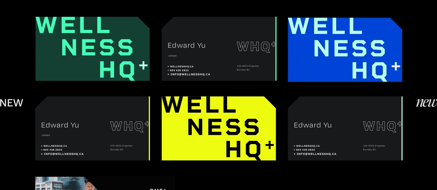 Wellness HQ envisioned to move beyond traditional “sick care” clinics into a bold new space of preventative, educational, and performance-driven wellness. The new identity brings movement, discipline, and aspiration to the forefront through dynamic type and a future-minded color palette, positioning Wellness HQ as the next-generation clinic where prevention, performance, and style collide.